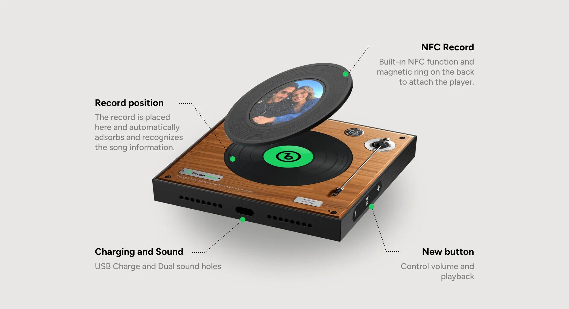 FridgeBeats™ is a personalised fridge magnet that plays a song you choose.